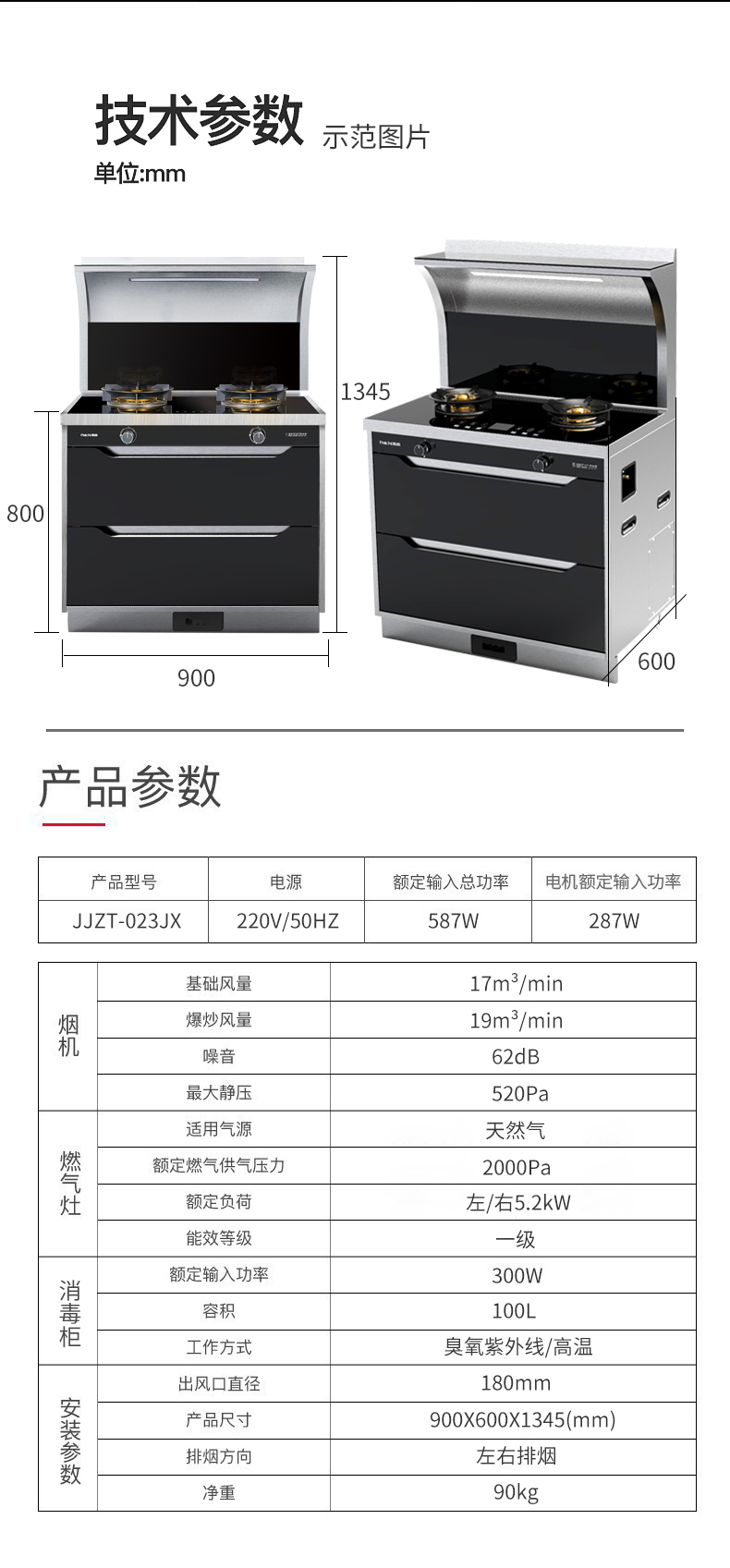 一級能效 消毒柜為一體集成灶