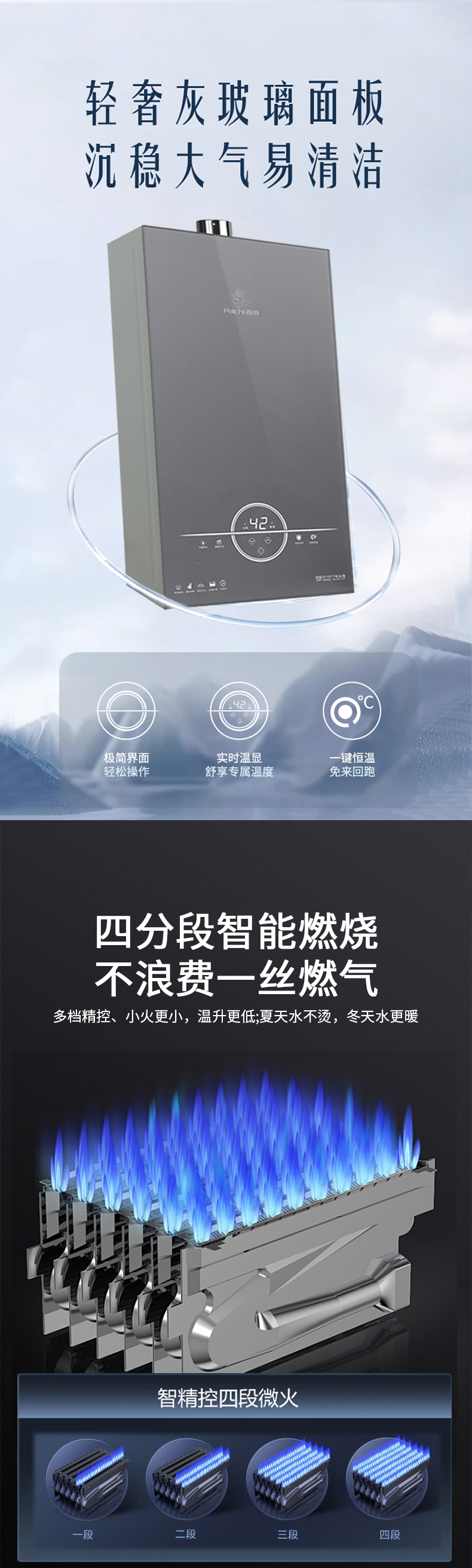 16升精準控溫 四分段燃氣技術